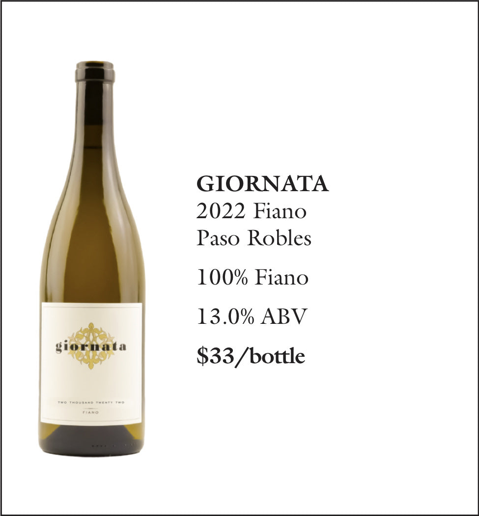 Few white wines pair as effortlessly with almost any dish as Fiano does. An extraordinary vintage from Paso Robles. 13.0% ABV. Notes of ripe tropical fruit, yellow apple and golden raisin.